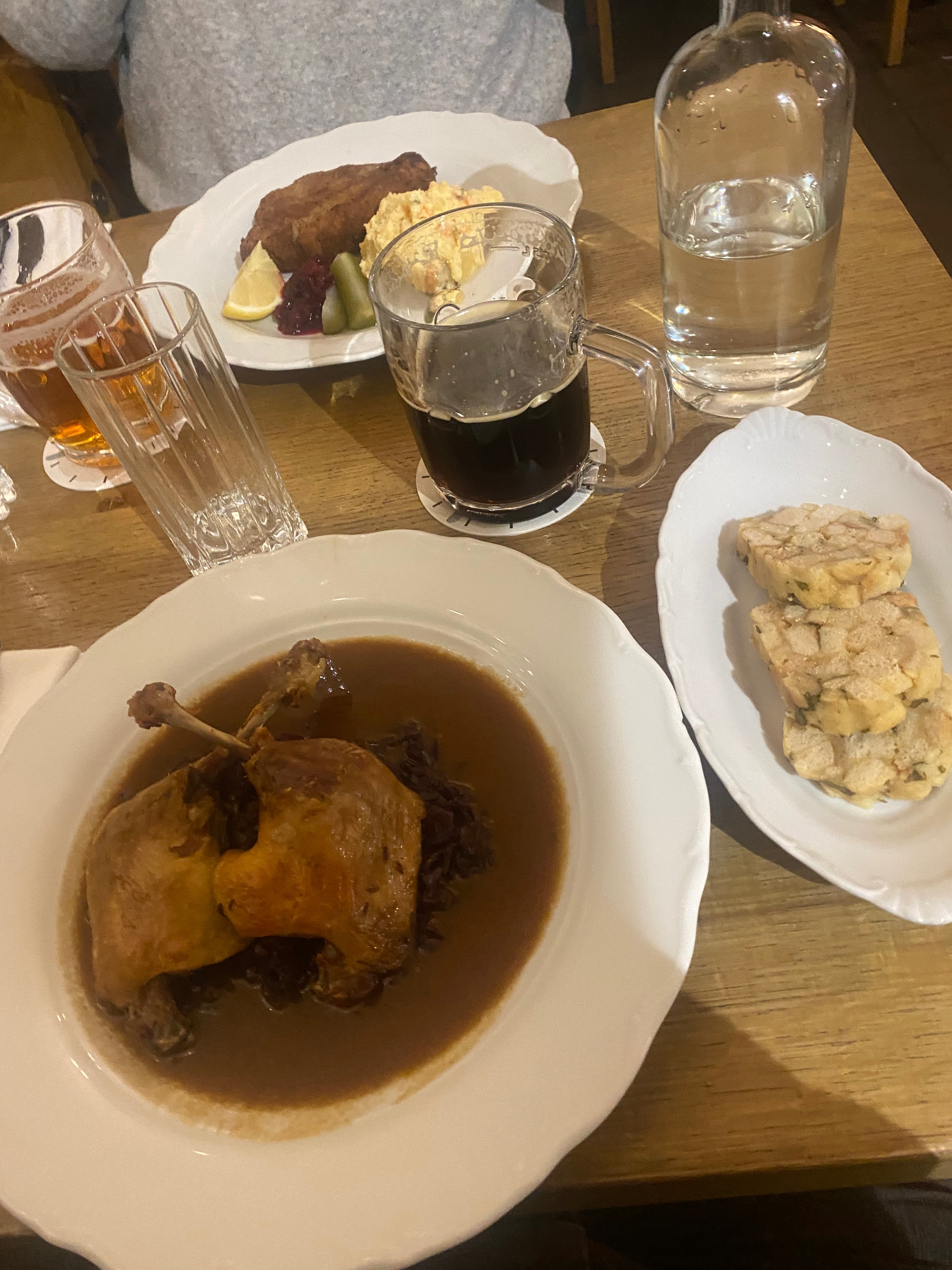 Akşam yemeklerimizin birinde, kalenin güney kapısının hemen karşısında bulunan Kuchyn’e gittik. Burası geleneksel Çek mutfağını şık tabaklarla servis eden bir mekân. Hiç beklemeden yer bulduk ama belli olmaz. Ben kırmızı lahana üstü ördek eti aldım, gayet lezzetli bir tabaktı.